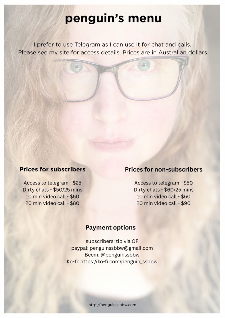 You’ve been enjoying my content and dreaming of me. I’m now offering sessions online and in person in north Brisbane, giving you the chance to make some of those dreams come true.
